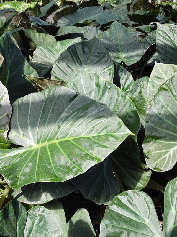 Alocasia Regal Shields Elephant Ear is a tropical plant in the Aroid family, closely related to Philodendrons. The glorious tropical and exotic foliage of plants belonging to the Araceae family is truly unmatched. Alocasia Regal Shields Elephant Ear is no exception; its impressively large, heart-shaped leaves will make you feel like you are in a tropical paradise in your own backyard. When you buy your Alocasia Regal Shields online, place it somewhere that receives bright, indirect light. Elephant Ear's oversized leaves give it a Jurassic feel, and it grows to be 3 to 4 feet tall in no time. Alocasia Regal Shields Elephant Ear looks great as a container planting on a patio, sunroom, or deck and will thrive in humid, shady conditions with moist soil.